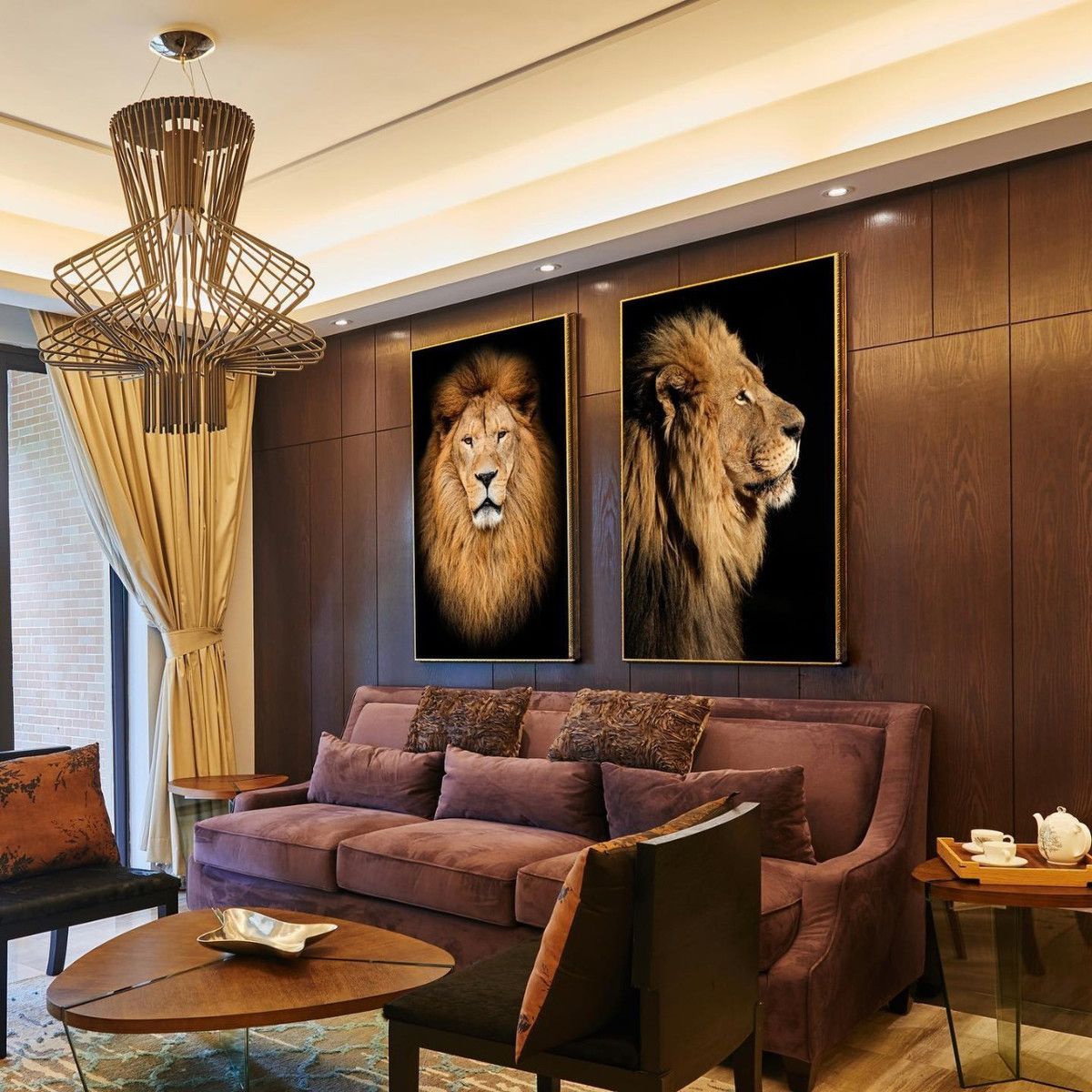 O Conjunto de Dois Quadros - 2 Leões é uma adição elegante e moderna para sua casa ou escritório. Com sua impressão HD de alta qualidade, as imagens são nítidas e vibrantes. A moldura de madeira maciça é revestida com acabamento liso, tornando-a durável e resistente ao desgaste ao longo do tempo.