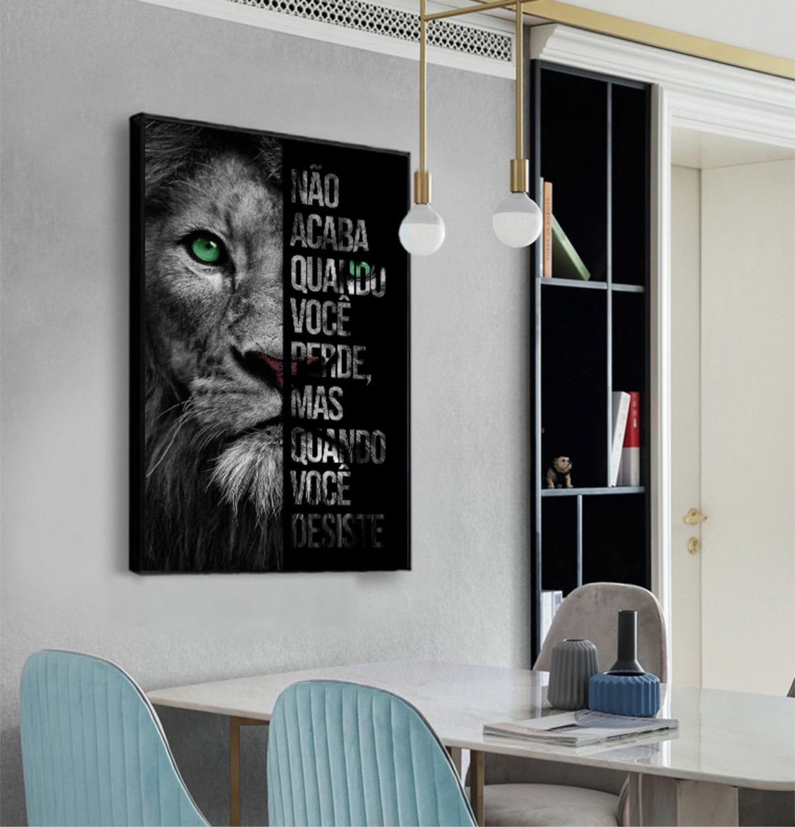 O Quadro - Leão Frase é uma adição elegante e moderna para sua casa ou escritório. Disponível em molduras preta, branca e madeirada, você pode escolher a opção que melhor se adapte à sua decoração. Além disso, você pode optar por quadros com ou sem vidro.